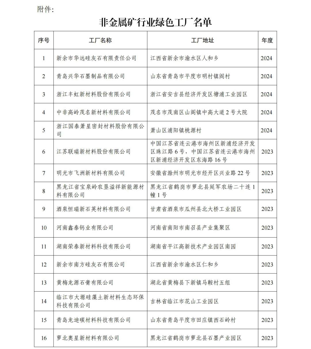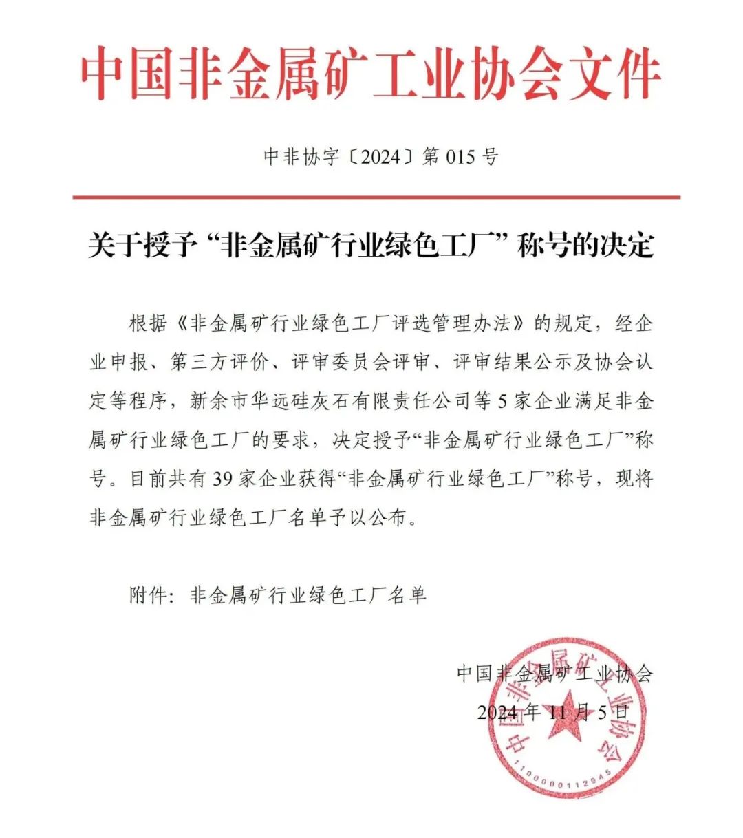 關(guān)于授予“非金屬礦行業(yè)綠色工廠”稱號的決定