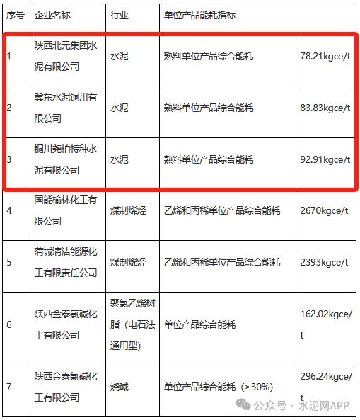 其中陜西北元集團(tuán)水泥有限公司、冀東水泥銅川有限公司、銅川堯柏特種水泥有限公司入選。