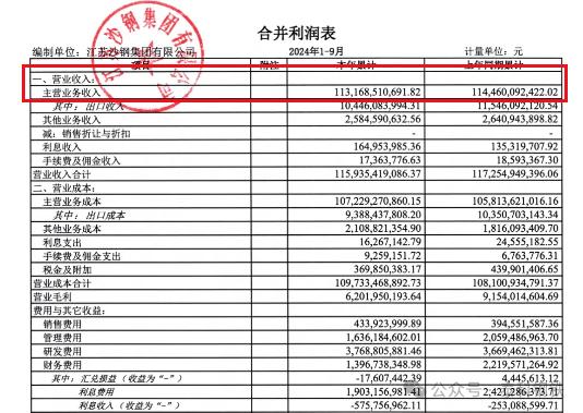 近日,江蘇沙鋼集團(tuán)有限公司2024年三季度合并及母公司財(cái)務(wù)報(bào)表公布,江蘇沙鋼集團(tuán)2024年1-9月?tīng)I(yíng)收1131.69億元(2023年同期1144.6億元),凈利潤(rùn)9.37億元(2023年同期24.29億元)。