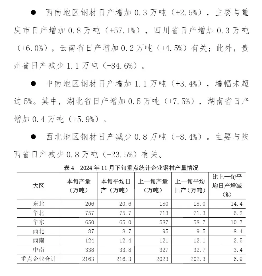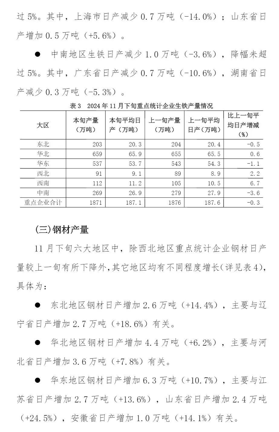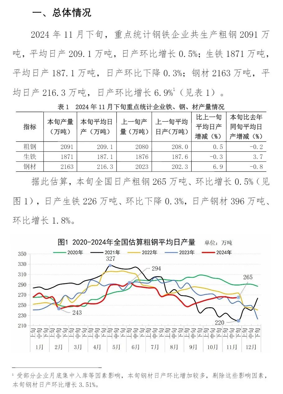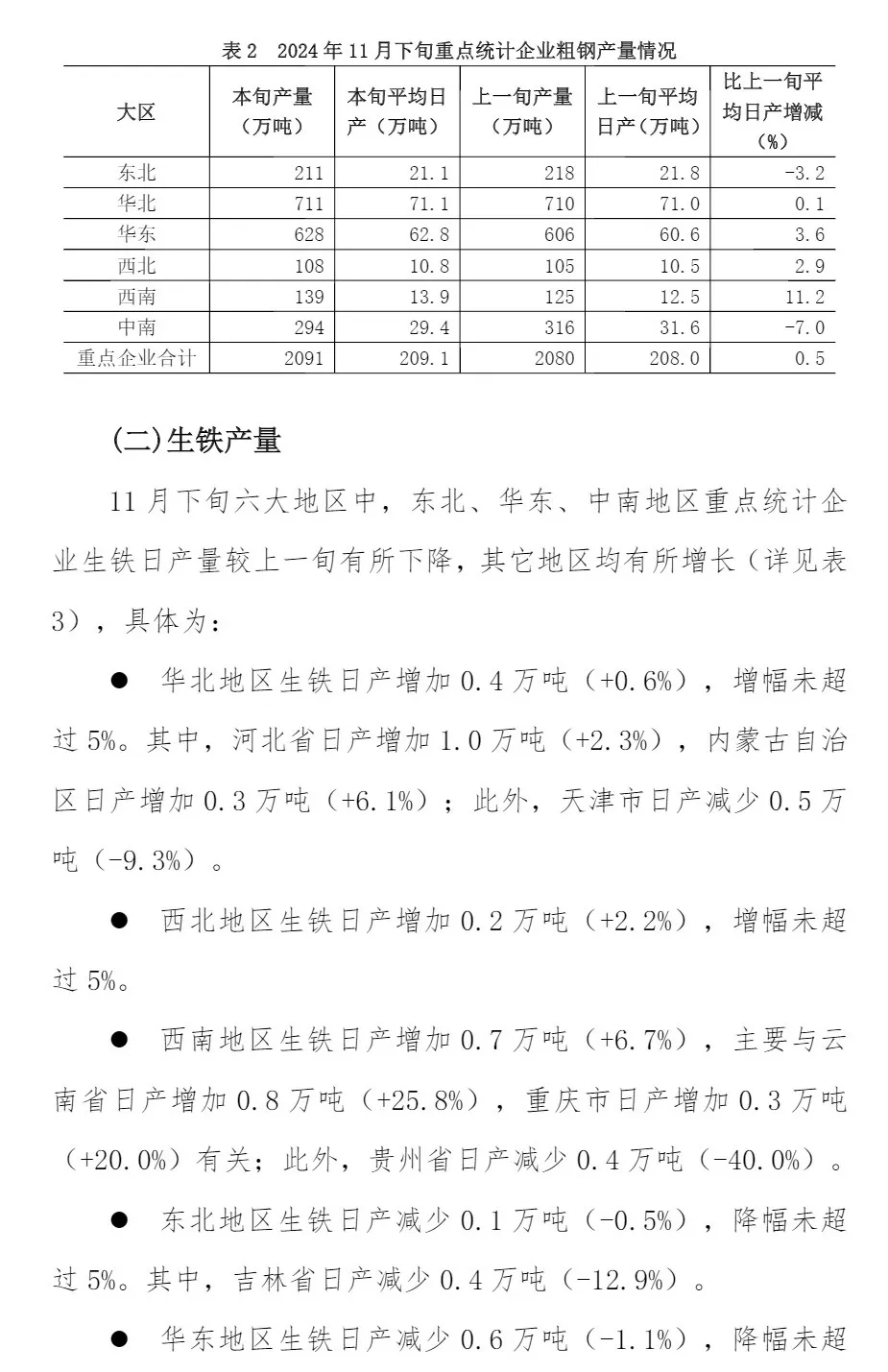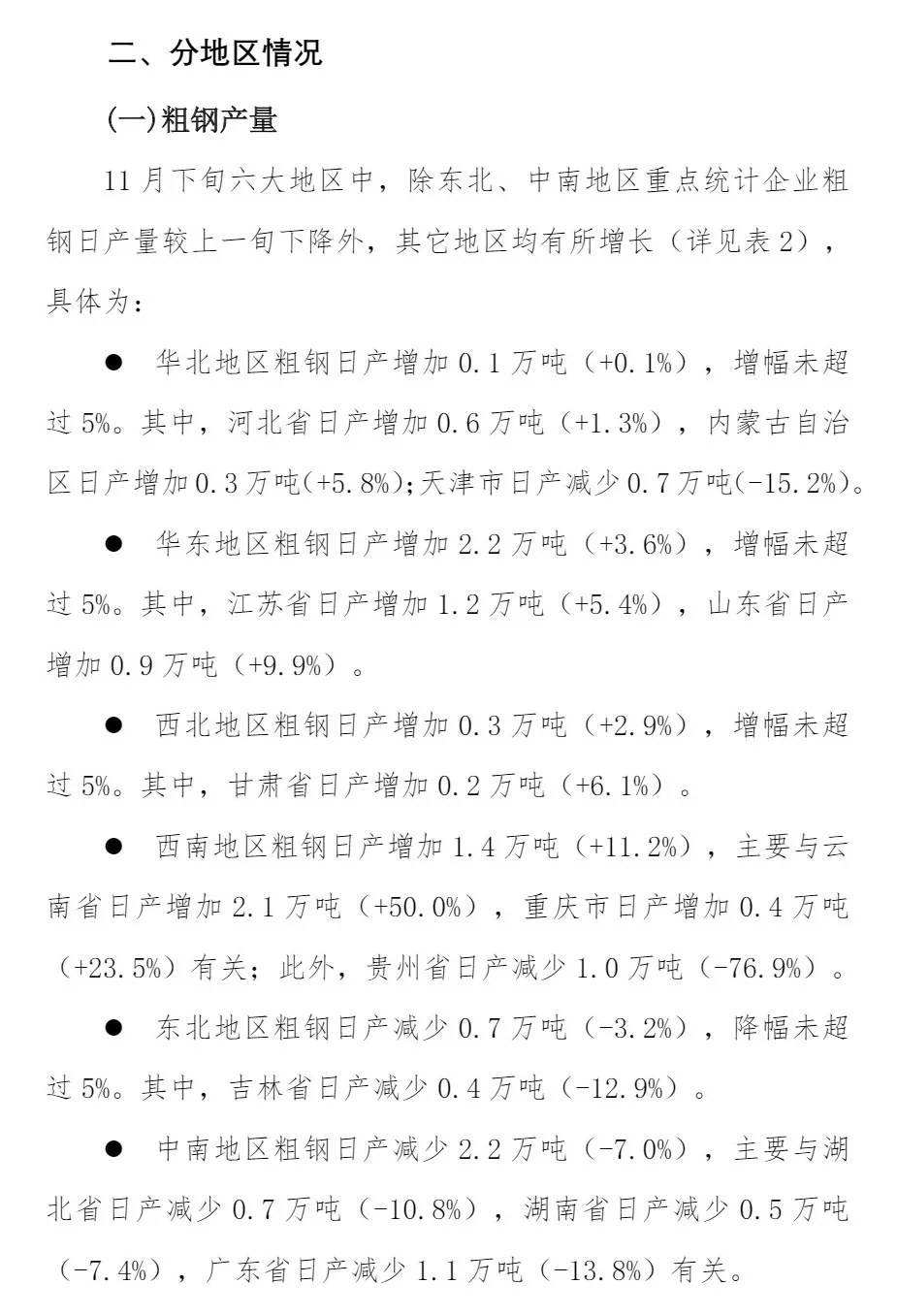11月下旬重點企業(yè)鋼鐵產(chǎn)量旬報?