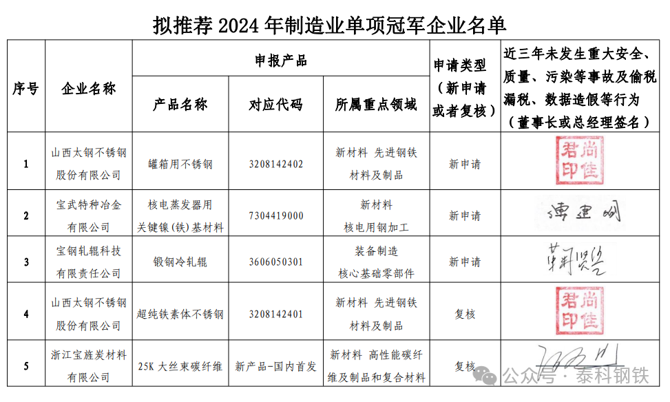 根據(jù)《工業(yè)和信息化部辦公廳關(guān)于開展2024年制造業(yè)單項冠軍企業(yè)遴選認定和復(fù)核評價工作的通知》(工信廳政法函〔2024〕328號),經(jīng)嚴格遴選,我部于2024年10月21日至2024年10月23日對2024年制造業(yè)單項冠軍企業(yè)擬推薦名單進行了公示。按照《工業(yè)和信息化部產(chǎn)業(yè)政策與法規(guī)司關(guān)于規(guī)范擬推薦單項冠軍企業(yè)公示的函》(工政法函〔2024〕97號)要求,為健全事前事中事后全周期管理機制,壓實企業(yè)生產(chǎn)經(jīng)營者責任,強化事前社會監(jiān)督,現(xiàn)對2024年制造業(yè)單項冠軍企業(yè)擬推薦名單進行再次公示(詳見附件)。