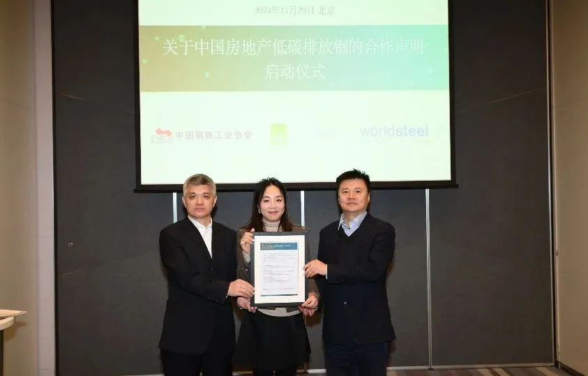 為加快推進低碳排放鋼在房地產(chǎn)行業(yè)的應(yīng)用,2024年11月29日,在中國鋼鐵工業(yè)協(xié)會、世界鋼鐵協(xié)會、城市土地學會(ULI)的共同倡議下,寶武、首鋼、河鋼、南鋼、包鋼、香港紹榮鋼鐵、安賽洛米塔爾等7家鋼鐵企業(yè),中建八局、中海、華潤置地、江蘇建業(yè)、中瑞鼎峰、越秀商管、珠江產(chǎn)投、太古地產(chǎn)、恒隆地產(chǎn)、瑞安房地產(chǎn)、新世界地產(chǎn)、鷹君集團、遠洋集團等13家房地產(chǎn)企業(yè),以及中鋼協(xié)、世界鋼協(xié)、城市土地學會、落基山研究所、亞洲研究與參與(ARE)和易碳等6家院所和協(xié)會,在北京和香港兩地共同啟動了房地產(chǎn)低碳排放鋼的合作倡議,承諾自愿推廣低碳排放鋼的使用。