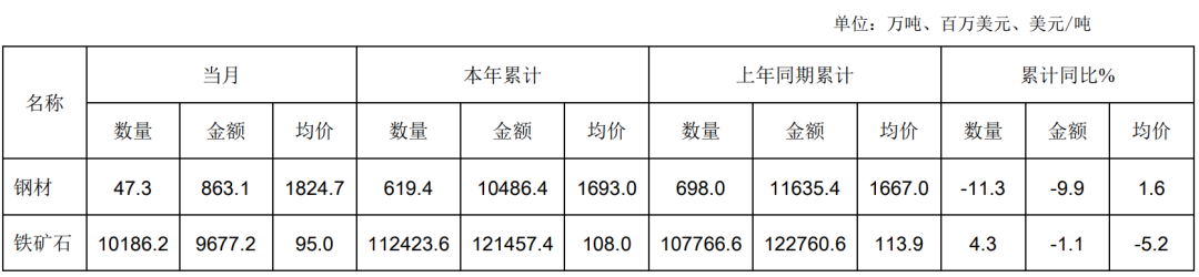 2024年11月鋼材、鐵礦石進(jìn)口快報(bào)