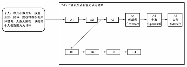 (1)A系列(C-TRIZ創(chuàng)新工程師系列),考核技術(shù)創(chuàng)新方法應(yīng)用與咨詢能力等級(jí),具體分為A1、A2、A3、A4、A5、A6等級(jí);(2)B系列(C-TRIZ創(chuàng)新培訓(xùn)師系列),考核技術(shù)創(chuàng)新方法培訓(xùn)能力等級(jí),具體分為B1、B2、B3、B4等級(jí)。認(rèn)定指標(biāo)包括:理論知識(shí)掌握程度、實(shí)際應(yīng)用能力、推廣能力、咨詢與培訓(xùn)能力。認(rèn)定依據(jù)包括:理論考核、案例分析、創(chuàng)新成果展示、培訓(xùn)與指導(dǎo)記錄。