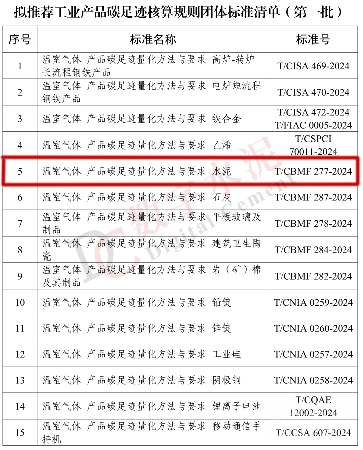 近日,工信部印發(fā)《擬推薦工業(yè)產(chǎn)品碳足跡核算規(guī)則團(tuán)體標(biāo)準(zhǔn)推薦清單(第一批)公示》稱,按照《工業(yè)和信息化部辦公廳 生態(tài)環(huán)境部辦公廳 國家發(fā)展改革委辦公廳 市場監(jiān)管總局辦公廳關(guān)于征集重點(diǎn)工業(yè)產(chǎn)品碳足跡核算規(guī)則標(biāo)準(zhǔn)研究課題的通知》(工信廳聯(lián)節(jié)函〔2024〕347號(hào))要求,經(jīng)相關(guān)標(biāo)準(zhǔn)化機(jī)構(gòu)推薦、專家評審等程序,形成擬推薦工業(yè)產(chǎn)品碳足跡核算規(guī)則團(tuán)體標(biāo)準(zhǔn)清單(第一批)。其中,標(biāo)準(zhǔn)號(hào)為“T/CBMF277-2024”的“溫室氣體 產(chǎn)品碳足跡量化方法與要求 水泥”入選擬推薦工業(yè)產(chǎn)品碳足跡核算規(guī)則團(tuán)體標(biāo)準(zhǔn)清單(第一批)。