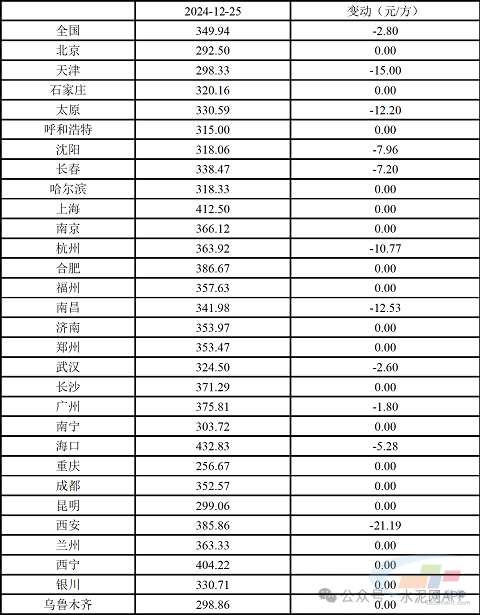 表:全國(guó)29個(gè)省會(huì)城市C30混凝土價(jià)格及變動(dòng)表