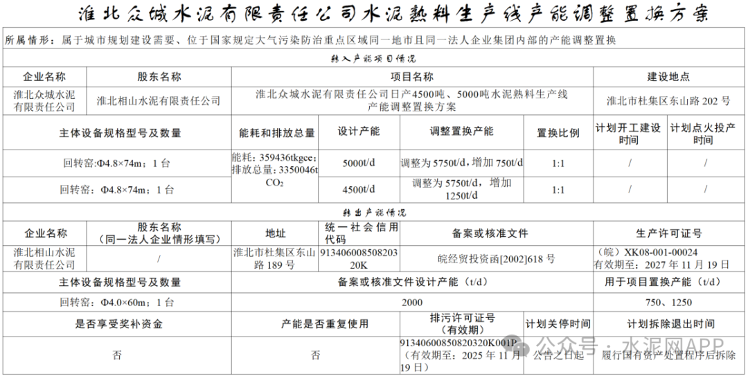 12月31日,安徽省工信廳發(fā)布“關于淮北眾城水泥有限責任公司水泥熟料生產線產能調整置換方案的公示”。