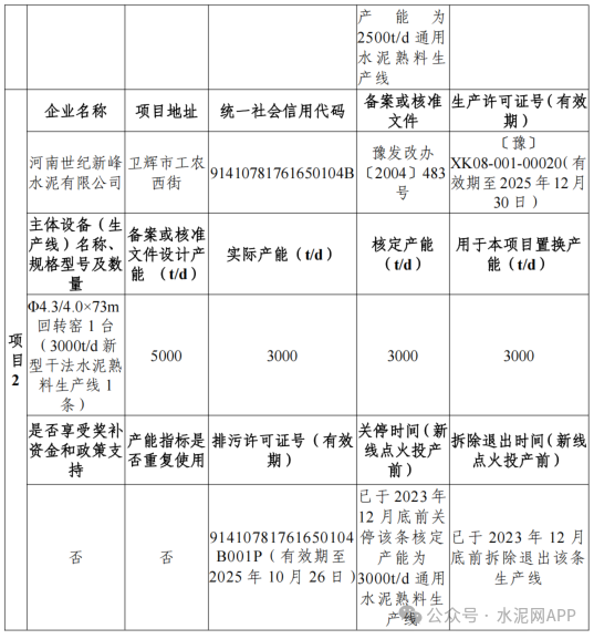 其中第一階段對用于該項目的新鄉(xiāng)市振新水泥有限公司日產(chǎn)2500噸熟料生產(chǎn)線和河南世紀(jì)新峰水泥有限公司日產(chǎn)3000噸熟料生產(chǎn)線產(chǎn)能,按照2:1減量置換為2750t/d產(chǎn)能;