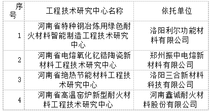 近日,河南省科技廳發(fā)布《關(guān)于認(rèn)定建設(shè)2024年度河南省工程技術(shù)研究中心的通知》(豫科實(shí)〔2025〕1號(hào)),洛陽(yáng)利爾功能材料有限公司、河南鑫誠(chéng)耐火材料股份有限公司、鄭州振中電熔新材料有限公司、洛陽(yáng)三合新材料科技有限公司等四家會(huì)員企業(yè)獲批河南省工程技術(shù)研究中心。