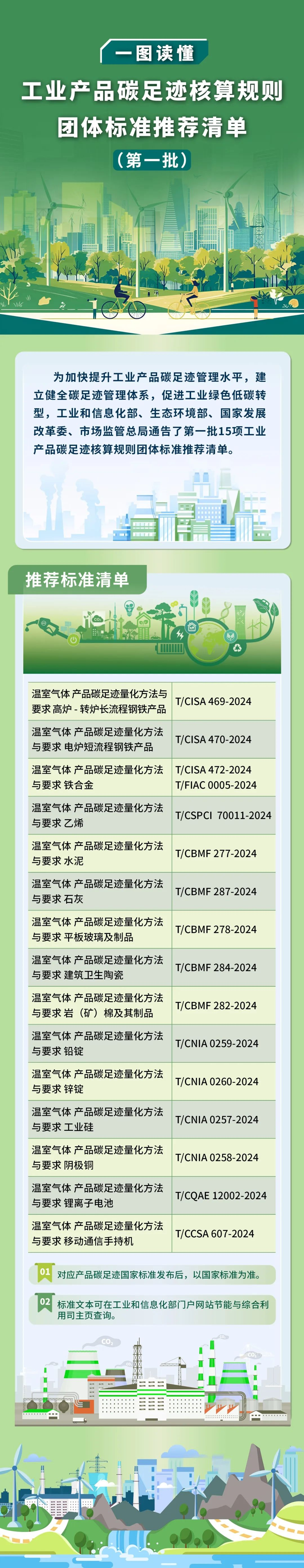 按照《工業(yè)和信息化部辦公廳 生態(tài)環(huán)境部辦公廳 國(guó)家發(fā)展改革委辦公廳 市場(chǎng)監(jiān)管總局辦公廳關(guān)于征集重點(diǎn)工業(yè)產(chǎn)品碳足跡核算規(guī)則標(biāo)準(zhǔn)研究課題的通知》《重點(diǎn)工業(yè)產(chǎn)品碳足跡核算規(guī)則標(biāo)準(zhǔn)編制指南》等相關(guān)要求,經(jīng)相關(guān)標(biāo)準(zhǔn)化機(jī)構(gòu)推薦、專(zhuān)家評(píng)審、網(wǎng)上公示等程序,工業(yè)和信息化部、生態(tài)環(huán)境部、國(guó)家發(fā)展改革委、市場(chǎng)監(jiān)管總局確定了15項(xiàng)工業(yè)產(chǎn)品碳足跡核算規(guī)則團(tuán)體標(biāo)準(zhǔn)推薦清單(第一批),涵蓋鋼鐵、鐵合金、乙烯、水泥、石灰、平板玻璃、建筑衛(wèi)生陶瓷、巖(礦)棉、鉛錠、鋅錠、工業(yè)硅、陰極銅、鋰離子電池、移動(dòng)通信手持機(jī)等產(chǎn)品。對(duì)于電解鋁等已發(fā)布碳足跡核算國(guó)家標(biāo)準(zhǔn)或行業(yè)標(biāo)準(zhǔn)的產(chǎn)品,不再推薦團(tuán)體標(biāo)準(zhǔn)。