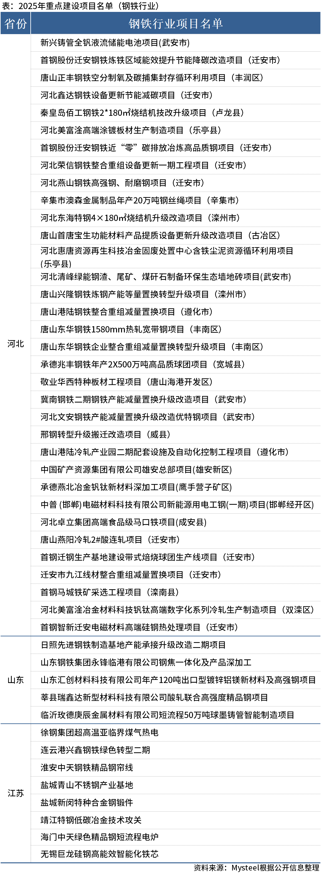 近日,河北、江蘇、 山東發(fā)布2025年重點(diǎn)建設(shè)項目名單,其中,涉及鋼鐵行業(yè)相關(guān)項目47個。