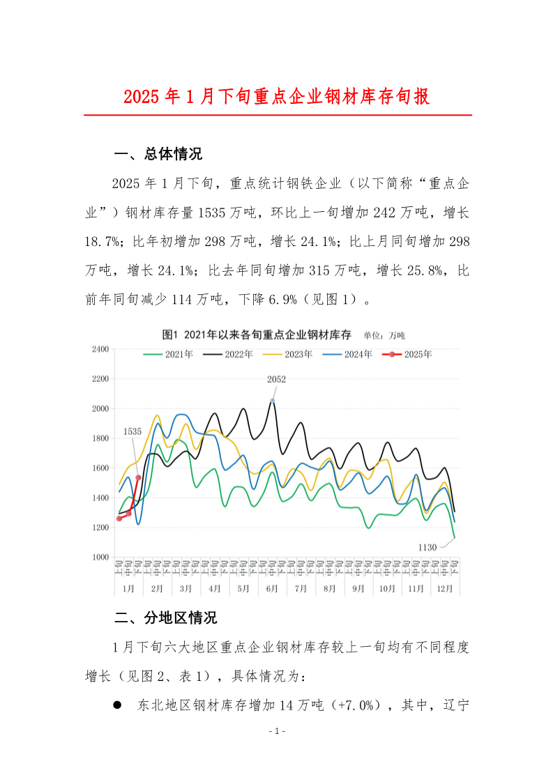 2025年1月下旬重點(diǎn)企業(yè)鋼材庫(kù)存旬報(bào)