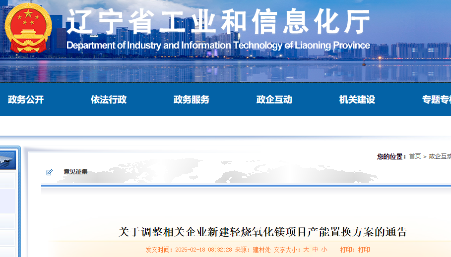 按照《遼寧省人民政府辦公廳關(guān)于推進(jìn)菱鎂行業(yè)高質(zhì)量發(fā)展的實(shí)施意見》(遼政辦發(fā)〔2023〕15號)、《遼寧省菱鎂礦浮選及鎂砂行業(yè)產(chǎn)能置換辦法》(遼工信建材〔2024〕18號)要求,根據(jù)相關(guān)市初審和申請,對海城謙源耐火材料有限公司、海城卓繁科技發(fā)展有限公司、海城市環(huán)菱鎂制品制造有限公司新建輕燒氧化鎂項(xiàng)目產(chǎn)能置換方案進(jìn)行了調(diào)整,現(xiàn)對調(diào)整后的產(chǎn)能置換方案重新予以通告。