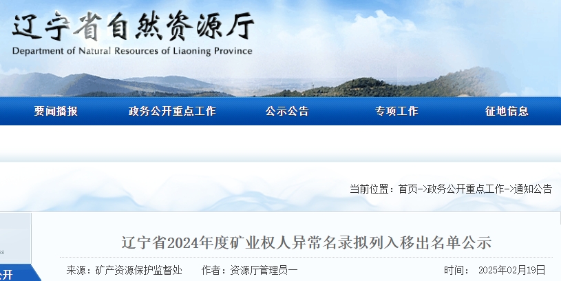 按照《礦業(yè)權(quán)人勘查開(kāi)采信息管理辦法》(自然資源部令第13號(hào))《自然資源部辦公廳關(guān)于做好2024年礦業(yè)權(quán)人勘查開(kāi)采信息公示工作的通知》(自然資辦函〔2024〕213號(hào))等要求,我省開(kāi)展了礦業(yè)權(quán)人信息管理實(shí)地核查工作。根據(jù)核查結(jié)果,擬將遼寧岫巖青花耐火材料有限公司二礦等9個(gè)礦業(yè)權(quán)列入異常名錄,擬將岫巖滿族自治縣富昌礦業(yè)有限公司泰興鎂礦等4個(gè)礦業(yè)權(quán)移出異常名錄?,F(xiàn)將擬列入移出異常名錄名單公示(詳細(xì)名單見(jiàn)附件)。