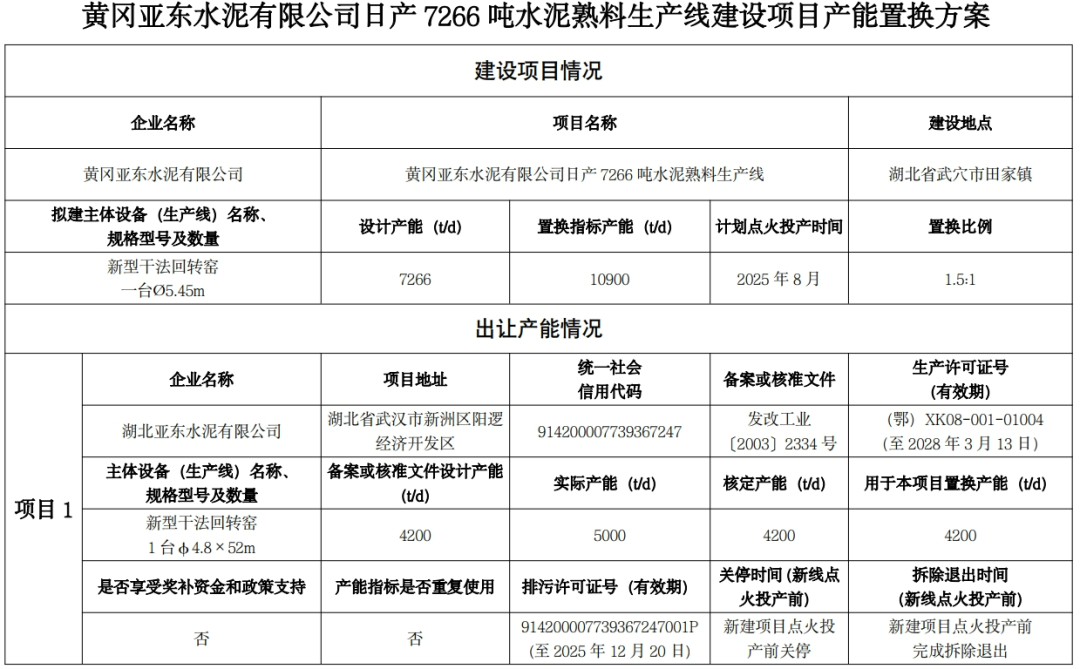 2月20日,湖北省發(fā)改委印發(fā)2025年省級(jí)重點(diǎn)項(xiàng)目清單,其中包含黃岡亞東水泥有限公司武穴制造廠第二條水泥熟料生產(chǎn)線建設(shè)工程(7266t/d)項(xiàng)目。據(jù)了解,黃岡亞東水泥有限公司擬投資325000萬元,建設(shè)一條7266t/d新型干法水泥熟料生產(chǎn)線,年產(chǎn)熟料239.8萬噸,年產(chǎn)水泥300萬噸,主體設(shè)備一臺(tái)回轉(zhuǎn)窯,采用先進(jìn)的六級(jí)預(yù)熱器帶新型干法窯外預(yù)分解燒成工藝,及配套水泥研磨、礦山原料基地、碼頭、5MW光伏發(fā)電工程、公共和輔助設(shè)施等。