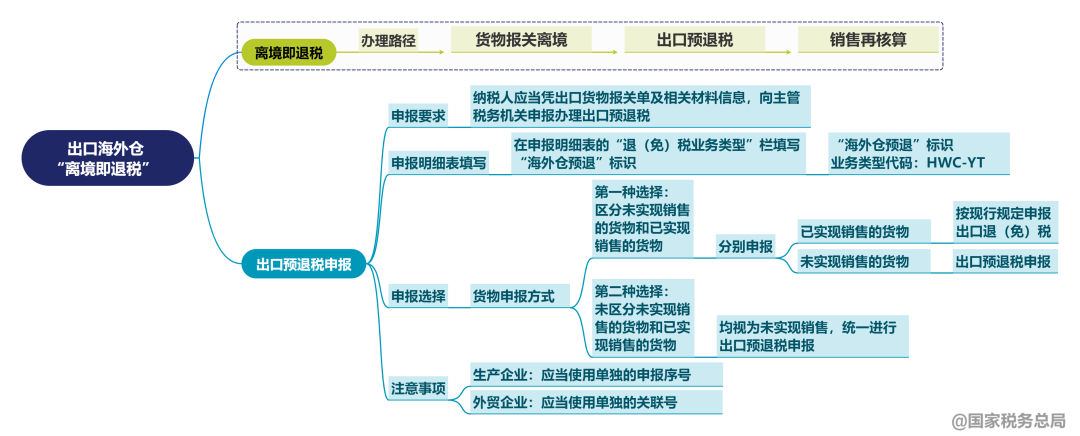 為深入貫徹落實(shí)黨中央、國(guó)務(wù)院決策部署,支持跨境電商出口海外倉(cāng)等新業(yè)態(tài)新模式發(fā)展,國(guó)家稅務(wù)總局近日發(fā)布《國(guó)家稅務(wù)總局關(guān)于支持跨境電商出口海外倉(cāng)發(fā)展出口退(免)稅有關(guān)事項(xiàng)的公告》(國(guó)家稅務(wù)總局公告2025年第3號(hào)),決定對(duì)納稅人以跨境電商出口海外倉(cāng)(以下簡(jiǎn)稱出口海外倉(cāng))方式出口的貨物實(shí)行“離境即退稅”,并明確有關(guān)出口退(免)稅事項(xiàng)。我們將指引內(nèi)容梳理為思維導(dǎo)圖,今日發(fā)布:出口海外倉(cāng)“離境即退稅”(出口預(yù)退稅申報(bào))。