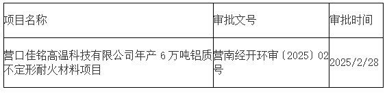 關(guān)于營(yíng)口佳銘高溫科技有限公司年產(chǎn)6萬噸鋁質(zhì)不定形耐火材料項(xiàng)目環(huán)境影響報(bào)告表的批復(fù)