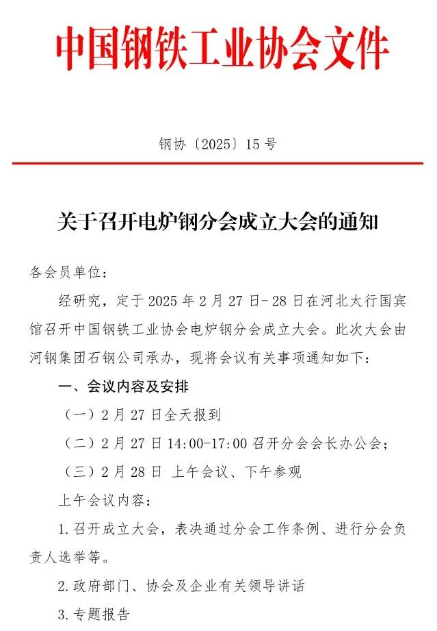 關(guān)于召開(kāi)電爐鋼分會(huì)成立大會(huì)的通知