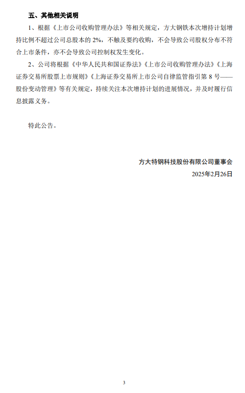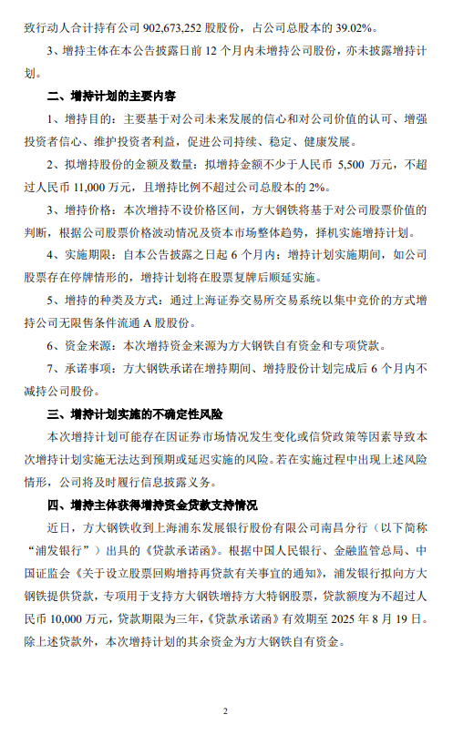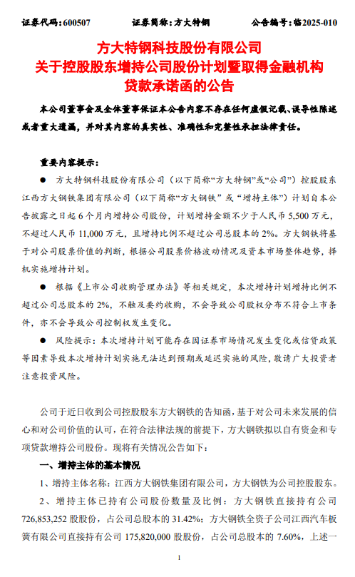2月25日,方大特鋼發(fā)布了《方大特鋼科技股份有限公司關(guān)于控股股東增持公司股份計劃暨取得金融機構(gòu)貸款承諾函的公告》(以下簡稱《公告》)。