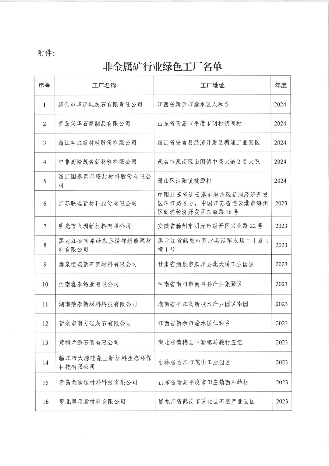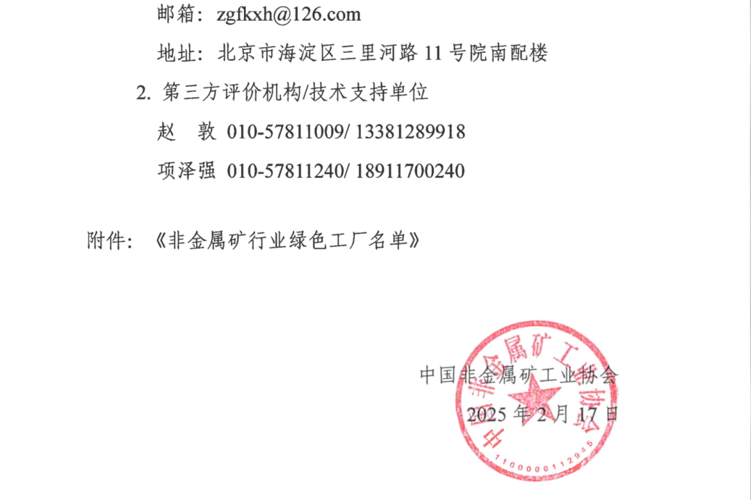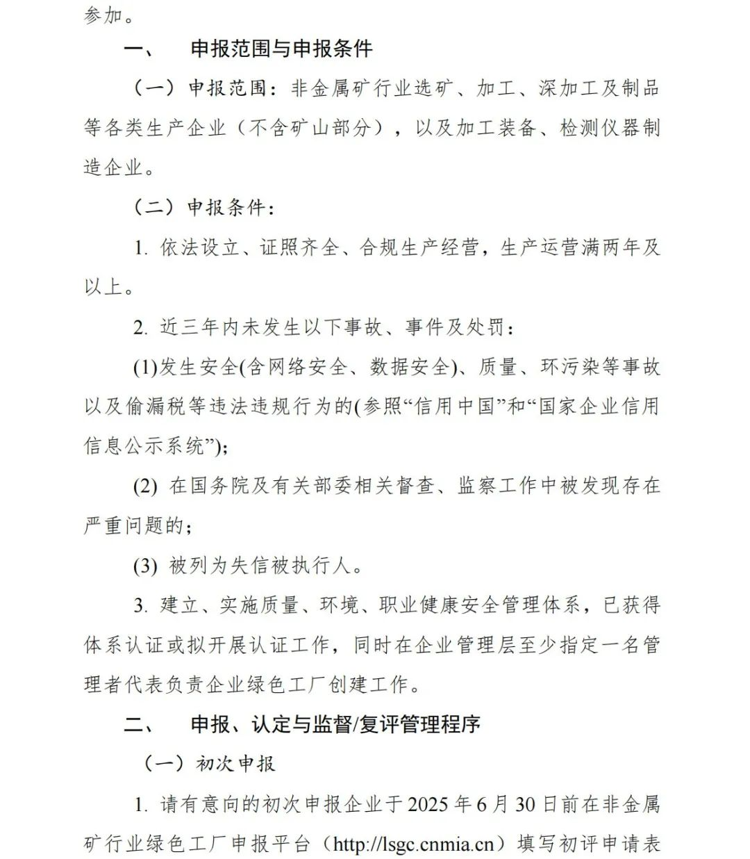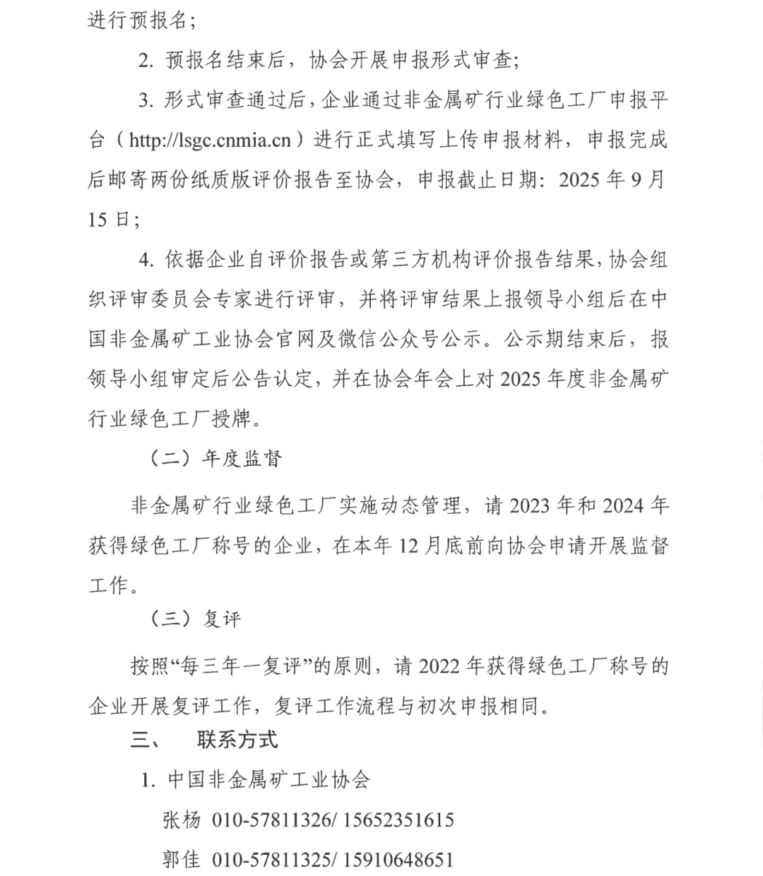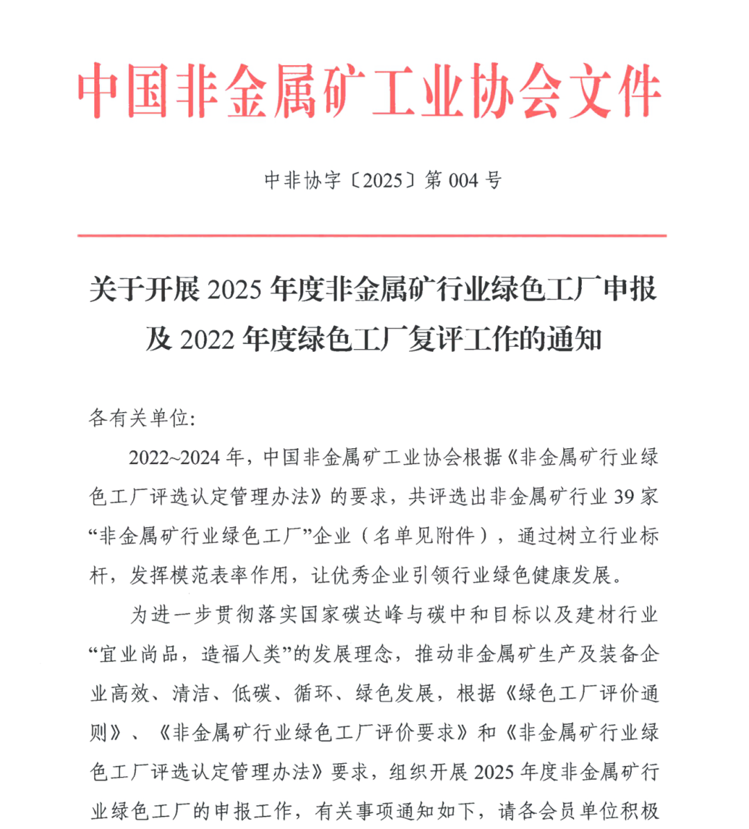 關于開展2025年度非金屬礦行業(yè)綠色工廠申報及2022年度綠色工廠復評工作的通知?