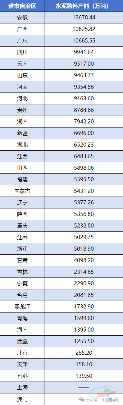 中國水泥網(wǎng)大數(shù)據(jù)顯示,截止到2024年底,全國共有已投產(chǎn)水泥熟料生產(chǎn)線1517條,合計熟料產(chǎn)能17.93億噸。 從地區(qū)分布來看,安徽、廣西、廣東三個省熟料產(chǎn)能均超過億噸,在全國排名前三,上海與澳門則沒有熟料產(chǎn)能布局。
