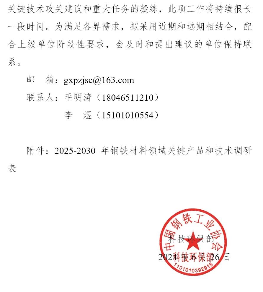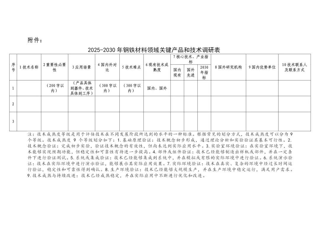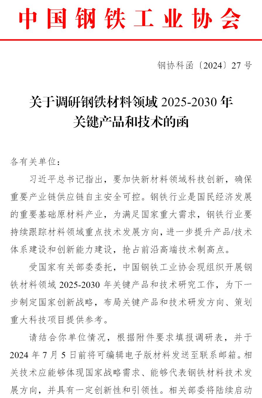 關(guān)于調(diào)研鋼鐵材料領(lǐng)域2025-2030年關(guān)鍵產(chǎn)品和技術(shù)的函?
