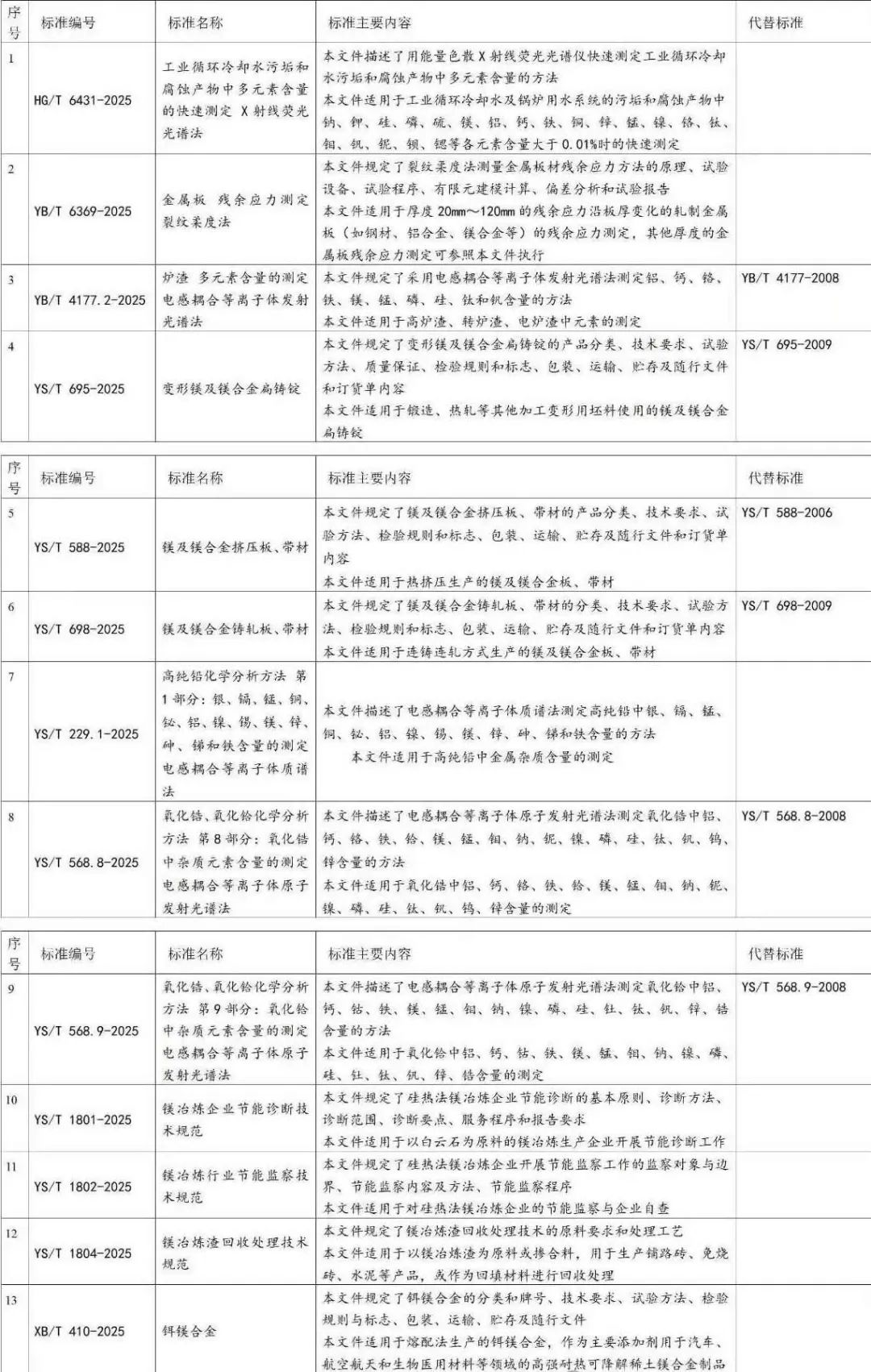 3月3日,工業(yè)和信息化部發(fā)布了500項行業(yè)標準、8項行業(yè)標準外文版及1項行業(yè)標準樣品報批公示。其中涉及鎂產業(yè)鏈的標準包括:《變形鎂及鎂合金扁鑄錠》、《鎂及鎂合金擠壓板、帶材》、《鎂及鎂合金鑄軋板、帶材》、《鎂冶煉企業(yè)節(jié)能診斷技術規(guī)范》、《鎂冶煉行業(yè)節(jié)能監(jiān)察技術規(guī)范》、《鎂冶煉渣回收處理技術規(guī)范》等。公示截止日期2025年4月1日。
