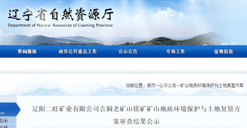 根據(jù)《國(guó)土資源部辦公廳關(guān)于做好礦山地質(zhì)環(huán)境保護(hù)與土地復(fù)墾方案編報(bào)有關(guān)工作的通知》(國(guó)土資規(guī)〔2016〕21號(hào))和關(guān)于印發(fā)《礦山地質(zhì)環(huán)境保護(hù)與土地復(fù)墾方案省級(jí)審查管理辦法(試行)》的通知(遼自然資發(fā)〔2022〕129號(hào))有關(guān)要求,我廳委托自然資源事務(wù)服務(wù)中心組織專(zhuān)家對(duì)遼陽(yáng)二旺礦業(yè)有限公司吉洞老礦山鎂礦礦山地質(zhì)環(huán)境與土地復(fù)墾方案進(jìn)行了審查。現(xiàn)將擬同意通過(guò)的該方案及專(zhuān)家評(píng)審意見(jiàn)進(jìn)行公示,公示期自發(fā)布之日起7個(gè)工作日。