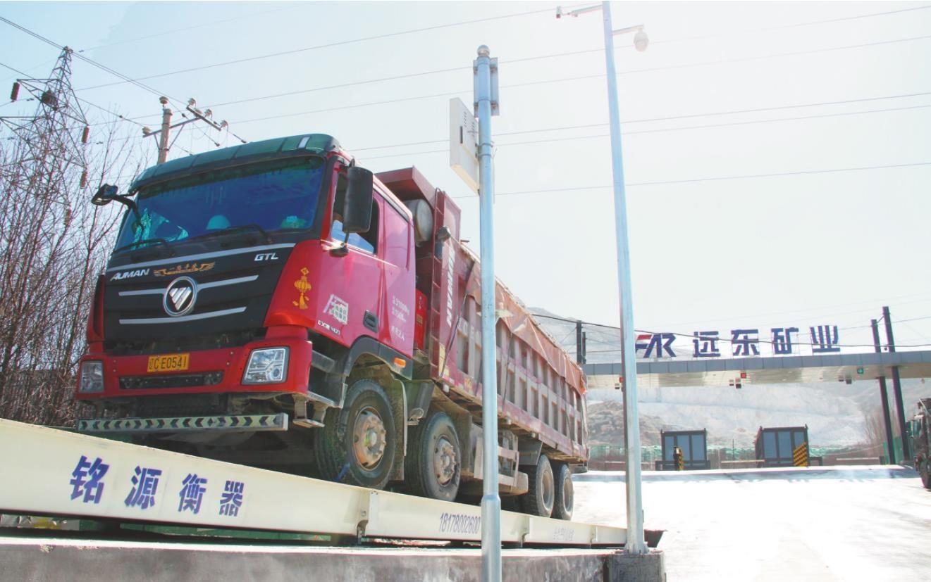 滿載鎂礦石的大貨車正在通過海城市牌樓鎮(zhèn)的遠東計量站,計量站設(shè)備與智慧菱鎂大數(shù)據(jù)平臺聯(lián)網(wǎng),實現(xiàn)智能計量礦石運出量。