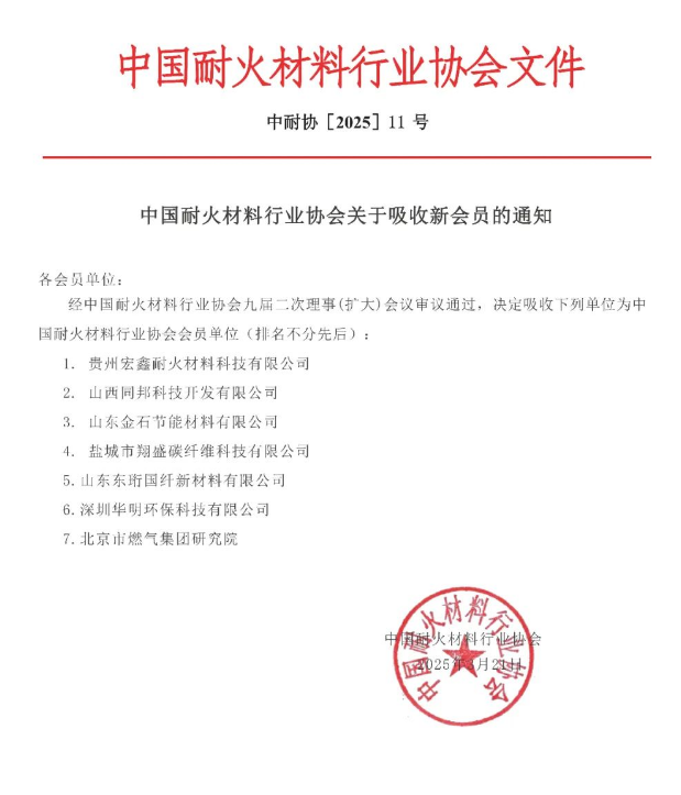 中國耐火材料行業(yè)協(xié)會關(guān)于吸收新會員的通知