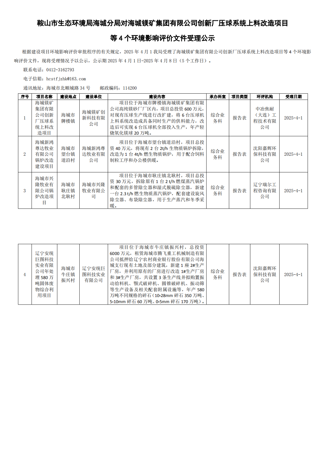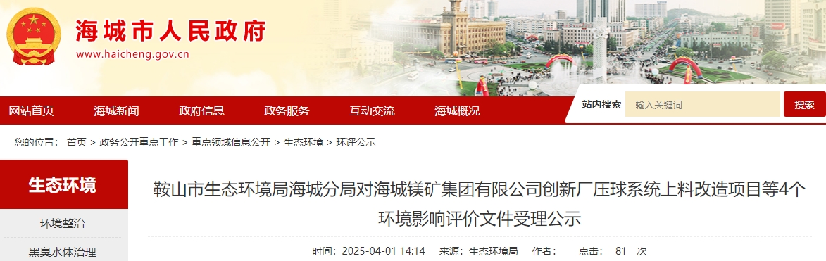 附件:海城鎂礦集團有限公司創(chuàng)新廠壓球系統(tǒng)上料改造項目環(huán)境影響報告表(全文)