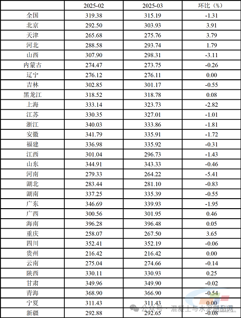 表:3月份全國30個省市C30預拌混凝土平均價格及變化情況(元/方,%)