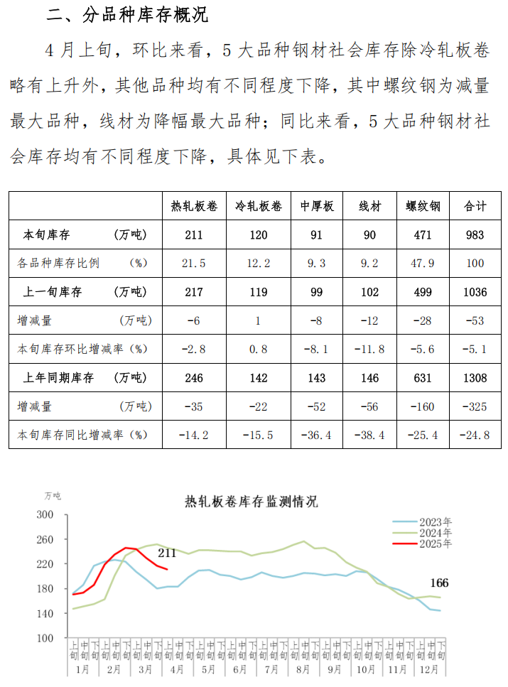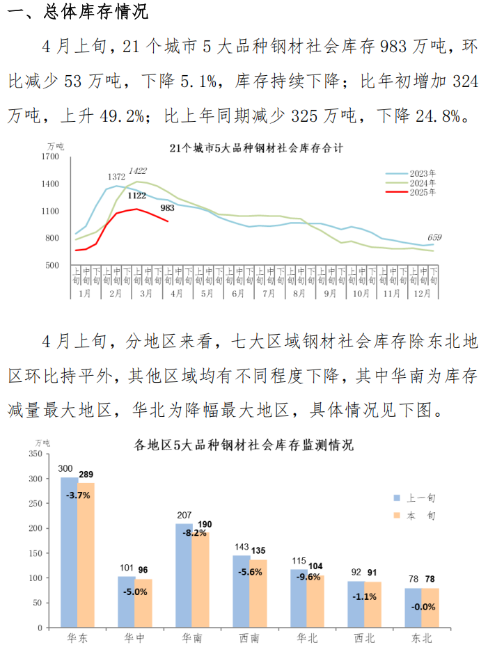 4月上旬鋼材社會(huì)庫(kù)存監(jiān)測(cè)旬報(bào)