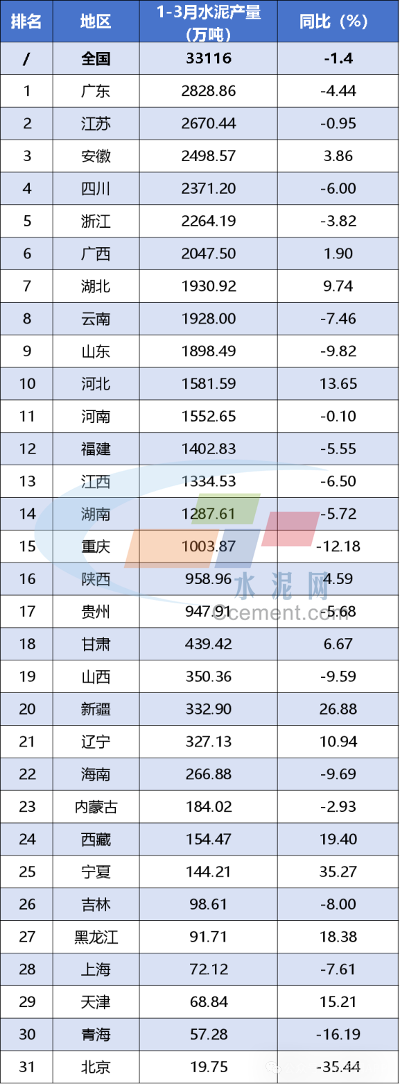 國家統(tǒng)計局?jǐn)?shù)據(jù)顯示,2025年3月水泥產(chǎn)量為1.58億噸,同比增長2.5%;2025年1-3月水泥產(chǎn)量為3.31億噸,同比下降1.4%。