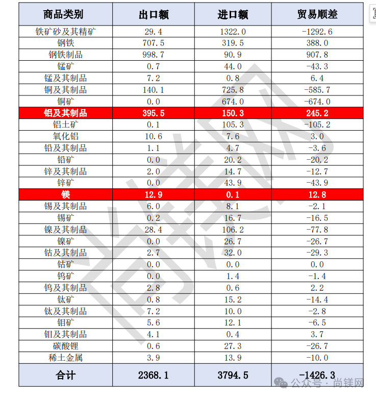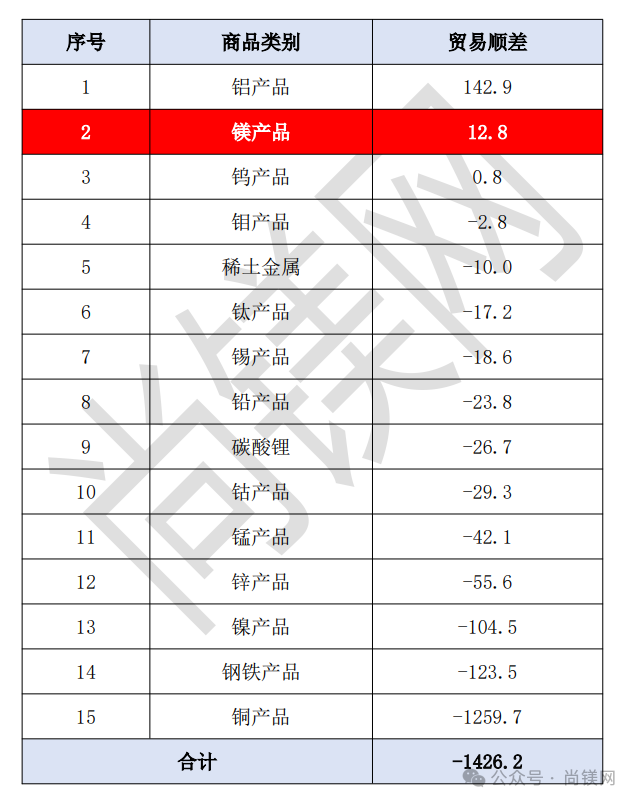 2024年中國(guó)主要金屬礦產(chǎn)品及制品貿(mào)易順差排序