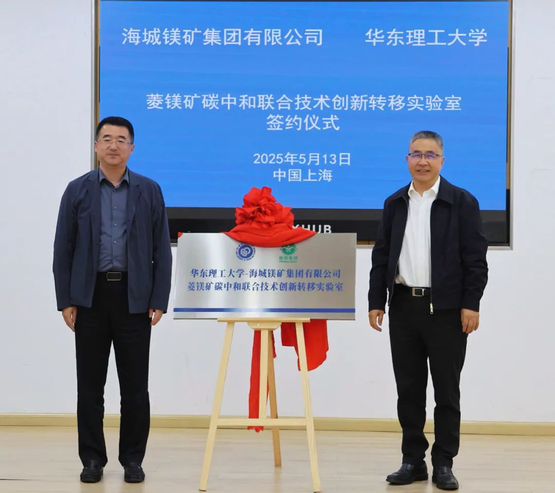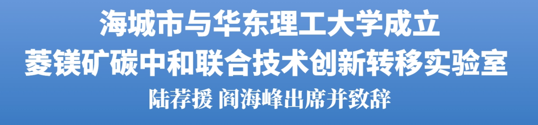 5月13日,海城市與華東理工大學合作建設的“菱鎂礦碳中和聯(lián)合技術創(chuàng)新轉移實驗室”揭牌儀式在華東理工大學舉行。鞍山市委常委、海城市委書記陸薦援,華東理工大學黨委常委、副校長閻海峰出席儀式并為實驗室揭牌。