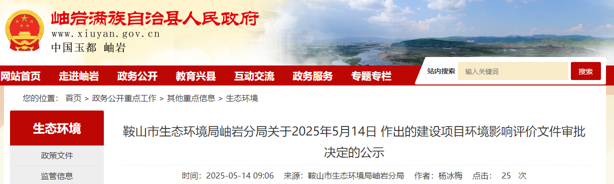根據建設項目環(huán)境影響評價審批程序管理的有關規(guī)定,經審查,2025年5月14日我局對建設項目環(huán)境影響評價文件申請作出審批決定。現將作出的審批決定情況予以公告,公告期為2025年5月14日-2025年5月22日(7日)。