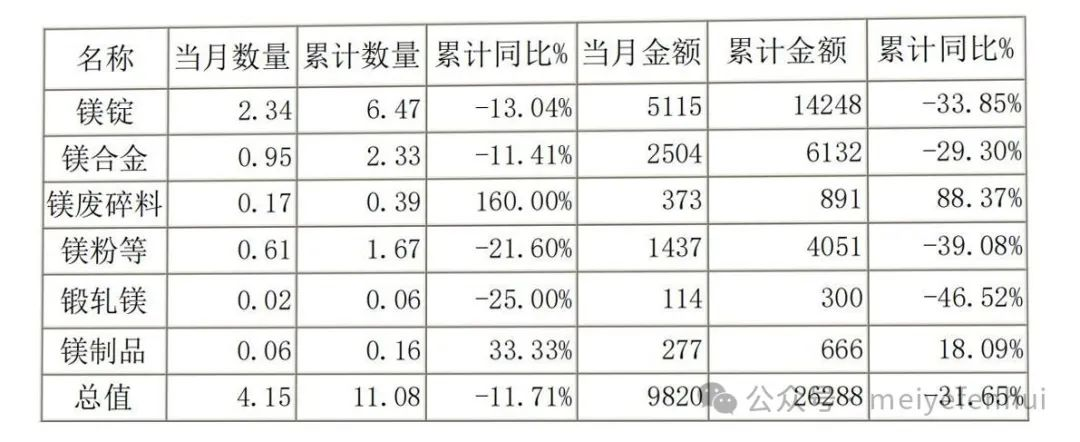 2025年1-3月中國各類鎂產(chǎn)品出口統(tǒng)計情況 (單位:萬噸、萬美元)
