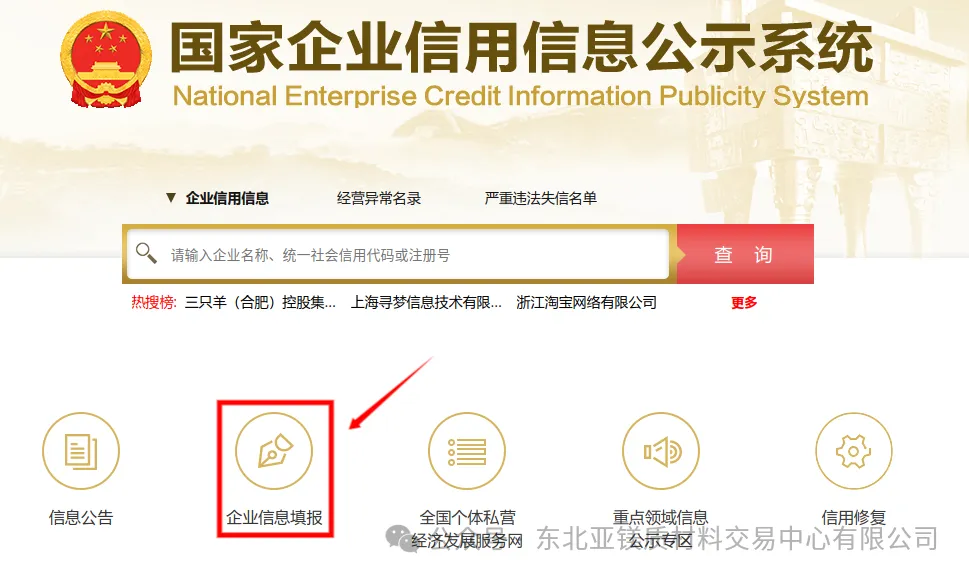 一、進(jìn)入國家企業(yè)信用信息公示系統(tǒng),網(wǎng)址:https://www.gsxt.gov.cn,進(jìn)入下方“企業(yè)信息填報”模塊。
