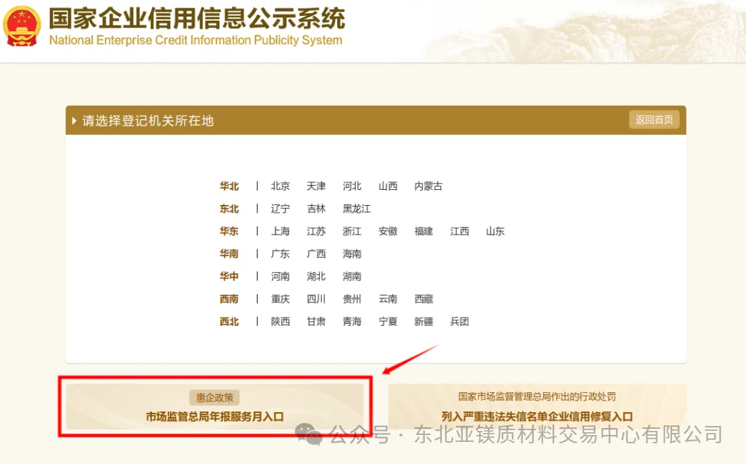 二、點(diǎn)擊下方左側(cè)“惠企政策 市場監(jiān)管總局年報服務(wù)月入口”。