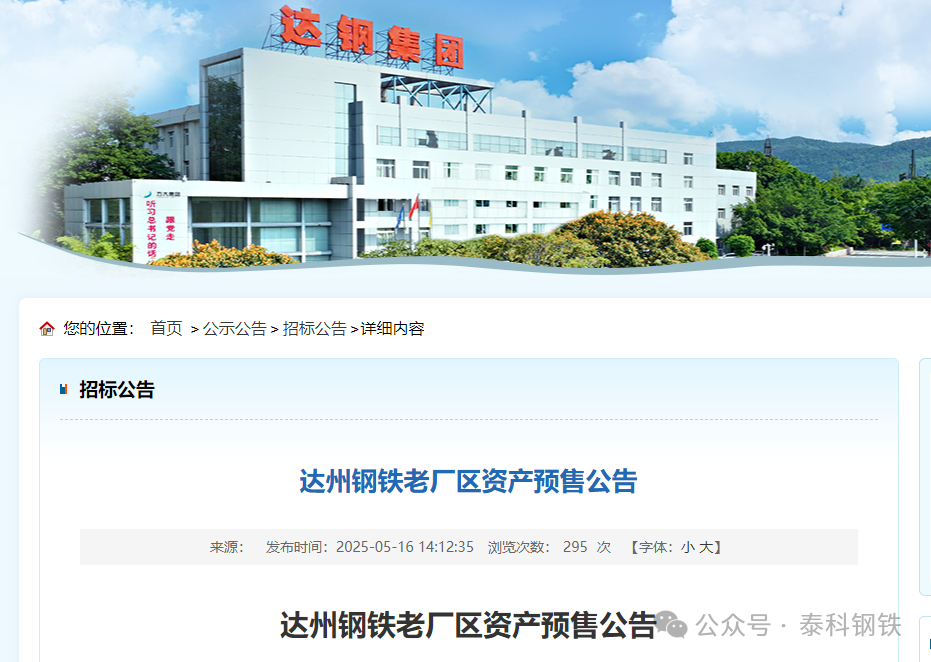 達州鋼鐵老廠區(qū)資產(chǎn)預售公告