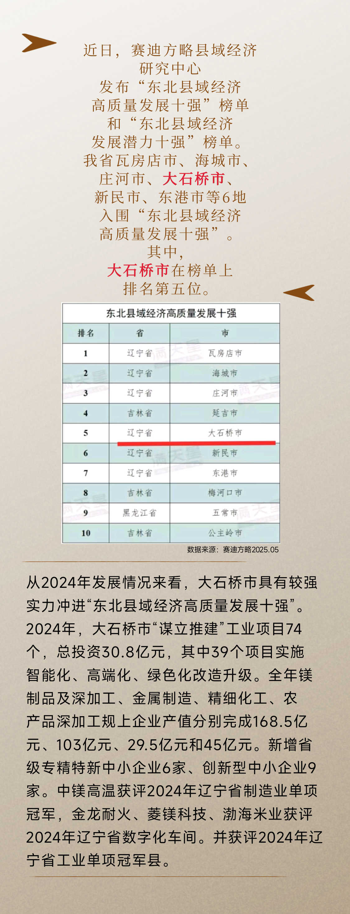 喜訊|大石橋上榜東北縣域十強(qiáng)!