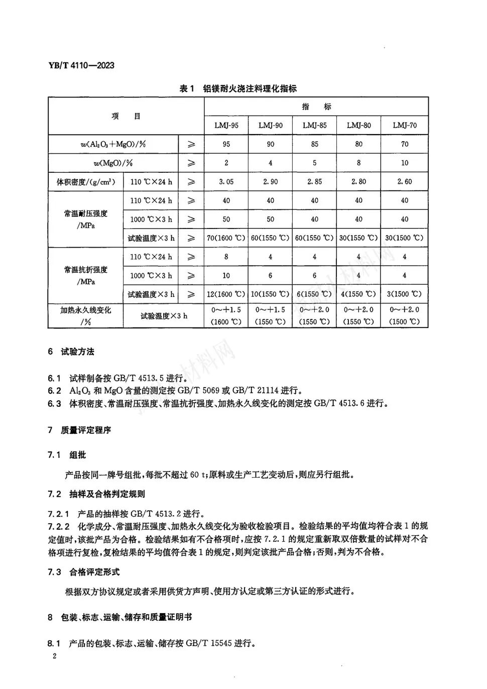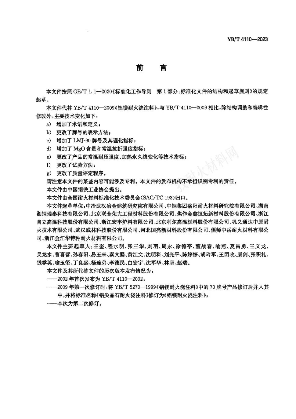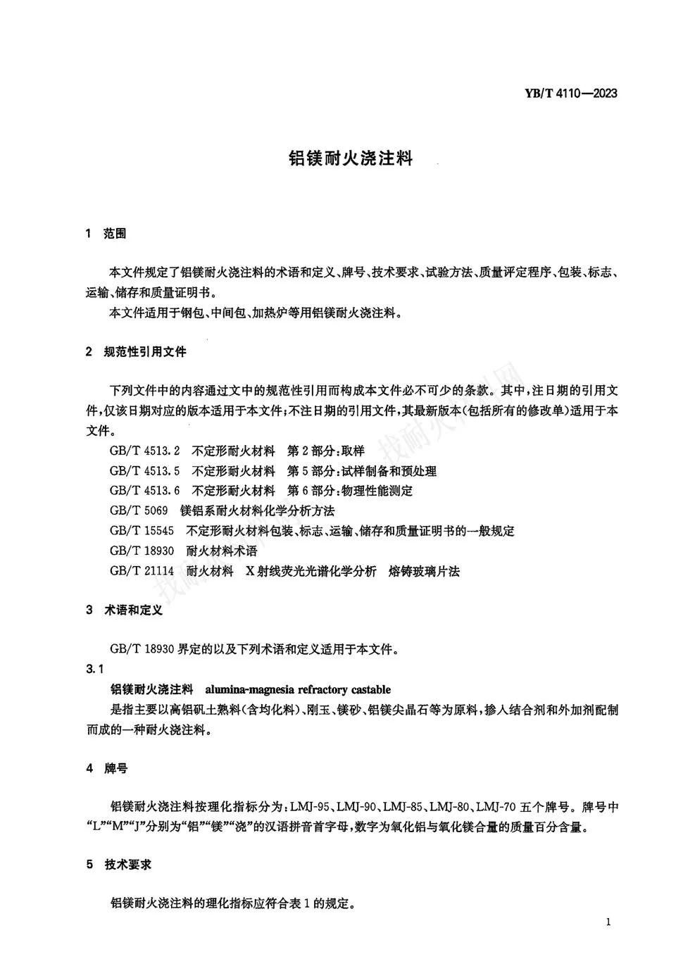 【耐材標準】YB/T4110-2023鋁鎂耐火澆注料
