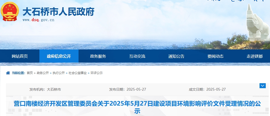 根據(jù)建設(shè)項目環(huán)境影響評價審批程序的有關(guān)規(guī)定,2025年5月27日我單位受理1個建設(shè)項目環(huán)境影響評價文件?,F(xiàn)將受理情況予以公示,公示期為2025年5月27日-2025年5月29日(3個工作日)。