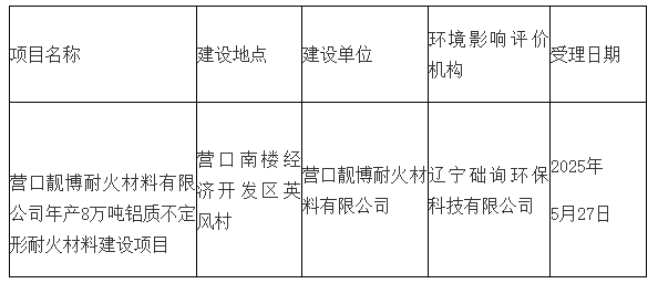 營口靚博耐火材料有限公司年產(chǎn)8萬噸鋁質(zhì)不定形耐火材料建設(shè)項目(公示稿)