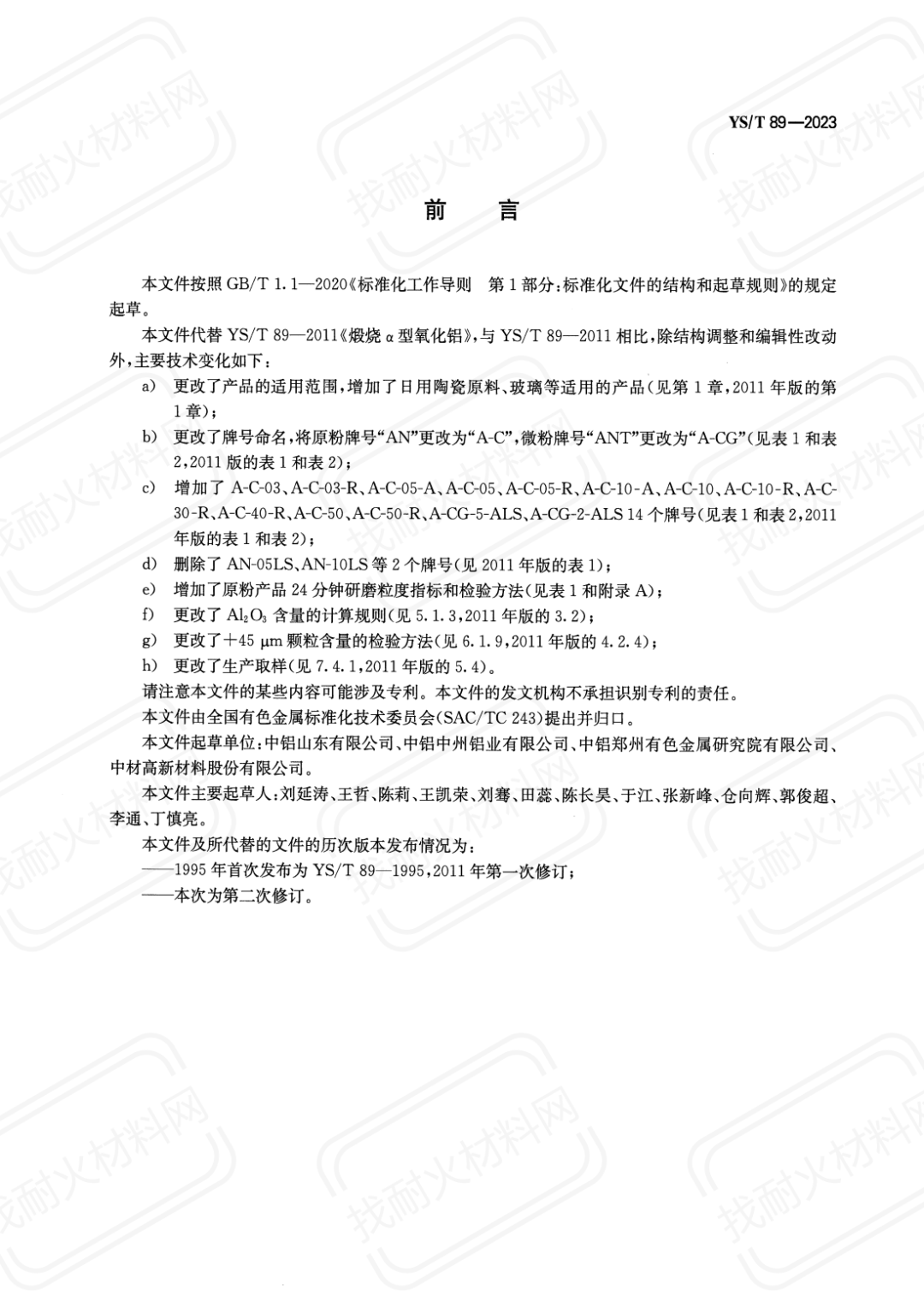 本標(biāo)準(zhǔn)代替了YS/T 89-2011 煅燒α型氧化鋁