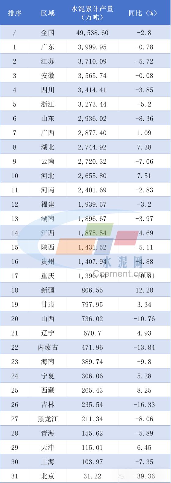 國家統(tǒng)計局數(shù)據(jù)顯示,4月水泥產量為1.65億噸,同比下降5.3%;1-4月水泥產量為4.95億噸,同比下降2.8%。