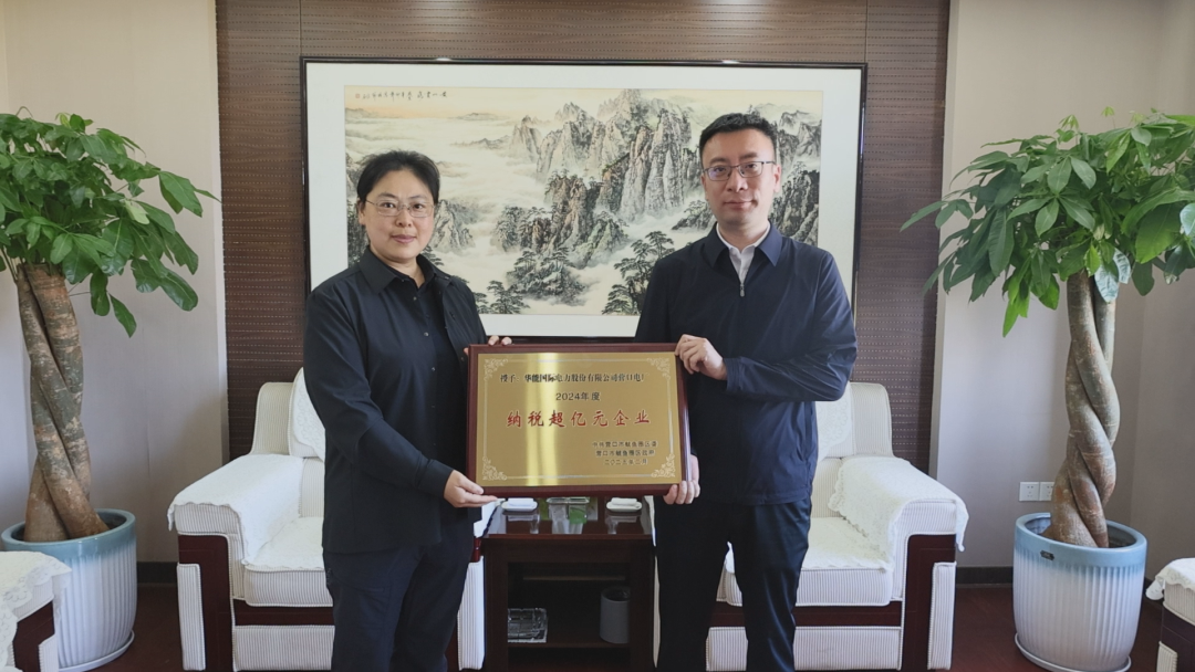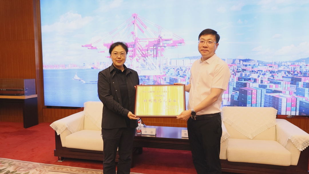白潔代表區(qū)政府向營口港務(wù)集團(tuán)、華能營口電廠頒發(fā)“2024年度納稅超億元企業(yè)”牌匾,表彰兩家企業(yè)對區(qū)域經(jīng)濟(jì)發(fā)展所作的重要貢獻(xiàn)。