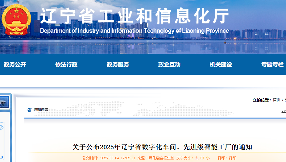 為深入貫徹落實習近平總書記關(guān)于智能制造的重要講話和重要指示精神,落實國務院辦公廳印發(fā)的《制造業(yè)數(shù)字化轉(zhuǎn)型行動方案》,扎實推進《遼寧省制造業(yè)數(shù)字化轉(zhuǎn)型行動計劃(2025-2027)》,分層分級系統(tǒng)性、規(guī)?;七M智能工廠建設,加快制造業(yè)數(shù)字化轉(zhuǎn)型、智能化升級。按照《關(guān)于開展2025年遼寧省智能工廠梯度培育工作的通知》(遼工信明電〔2025〕18號),我廳組織了2025年省級數(shù)字化車間、先進級智能工廠遴選工作。經(jīng)企業(yè)申報、各市推薦、專家評審、網(wǎng)上公示等環(huán)節(jié),確定了99家數(shù)字化車間、59家先進級智能工廠。現(xiàn)予以公布。