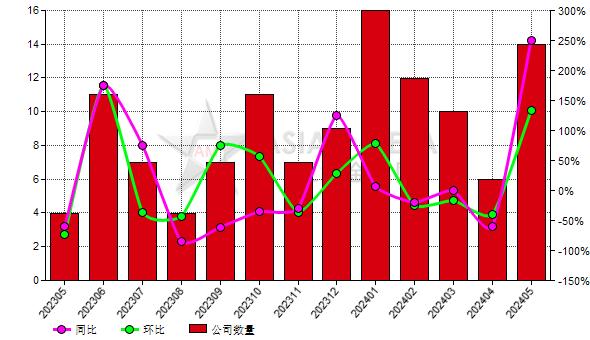 5月份中國共計14家鎂錠生產(chǎn)商增產(chǎn),上個月為6家,去年同期為4家。5月份增產(chǎn)鎂錠生產(chǎn)商分布為陜西11家,山西1家,黑龍江1家,內(nèi)蒙1家。